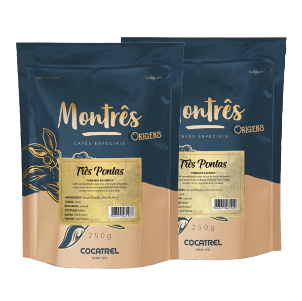 A linha Montrês é feita com cafés 100% arábica, especiais, classificados de acordo com a metodologia da Associação de Cafés Especiais (SCA). São rastreados por variedade e origem (microclima). Café de alta qualidade, com doçura marcante, uniforme e xícara limpa. Apresenta notas de frutas amarelas, caramelo, chocolate e limão. Cafés cuidadosamente selecionados desde a origem, tornando a sua experiência única a cada xícara. Tudo para que você eleve a um novo patamar o seu conceito sobre cafés especiais. Produzidos no Sul de Minas Gerais, os cafés Montrês utilizam, como matéria-prima, os melhores grãos especiais de café 100% arábica, produzidos de acordo com os princípios do programa 4C. Um encontro de aromas e notas que vai surpreender.